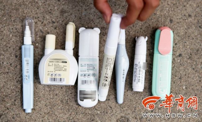 ■實驗物品:在多個小學、中學周邊購置了7支不同種類的修正液/修正筆